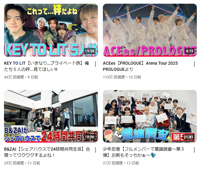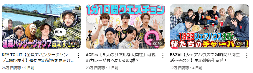 ちょっと怒られてしまうかもですが、KEY TO LITも大枠では「アイドル」ですが、彼らはバラエティー番組への出演も豊富ですよね。「真面目な答え」よりも「見ている人に受ける答え」を意識しているメンバーが多いので、YouTubeに関しても「見ている人が楽しめる動画」を意識しているんじゃないかなと。