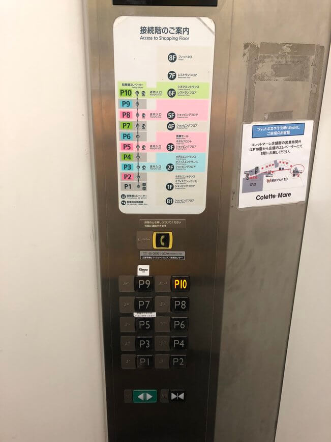 さらにです。コレットマーレにはエレベーターがいくつかありますが、8Fまで行くエレベーターはランドマーク側に流れるエスカレーター脇の入り口のみです。